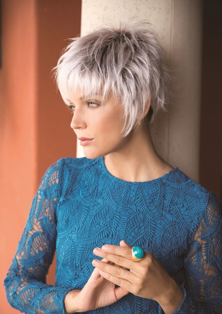 Billie from our Noriko Collection is a short-length synthetic wig. This straight ready-to-wear wig is a short spiky and flattering style for a decidedly edgy look. Featuring wispy bangs and a tapered back that hugs the nape. Billie is machine made with adjustable tabs in the back nape area to allow a more comfortable fit. The result is a comfortable fit with a natural look that is both fashionable and easy to wear.