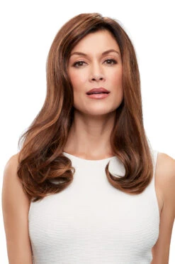 This clip in topper, worn over the part, adds volume to short styles with beautiful Remy human hair. The design is hand tied using French knotting, a superior knotting technique that creates the most natural appearance at the part as possible. This gorgeous topper is available in 8″, 12″ and 18″.Â