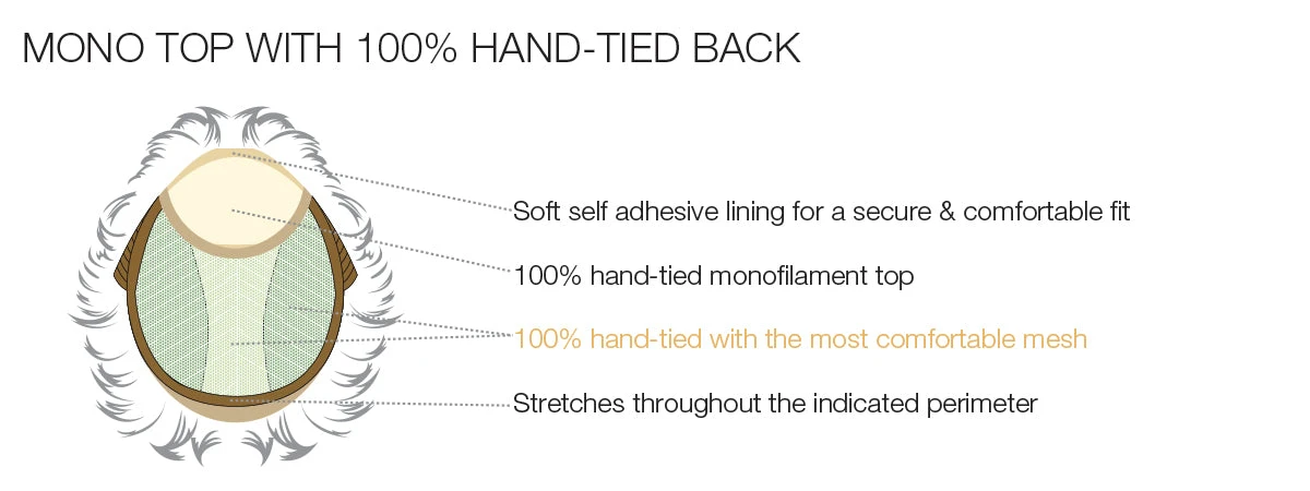 Monofilament Top – Provides the option of multi-directional parting and the illusion of natural hair growth at the scalp.