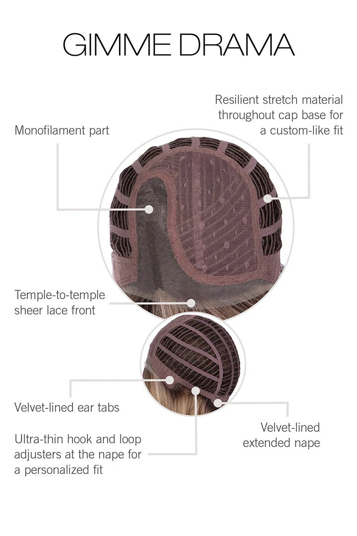 | Cap Design: | Hand-Tied Mono Part |Â Temple-to-Temple Sheer Lace Front | Velvet Lined Ear Tabs and Nape | Comfort Cap |