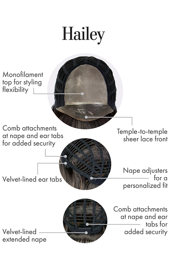 - Cap Construction: Full Mono Top | Temple-to-Temple Lace Front | Velvet ear tabs and extended nape | Comb attachments at ear tabs and nape | Nape Adjustments