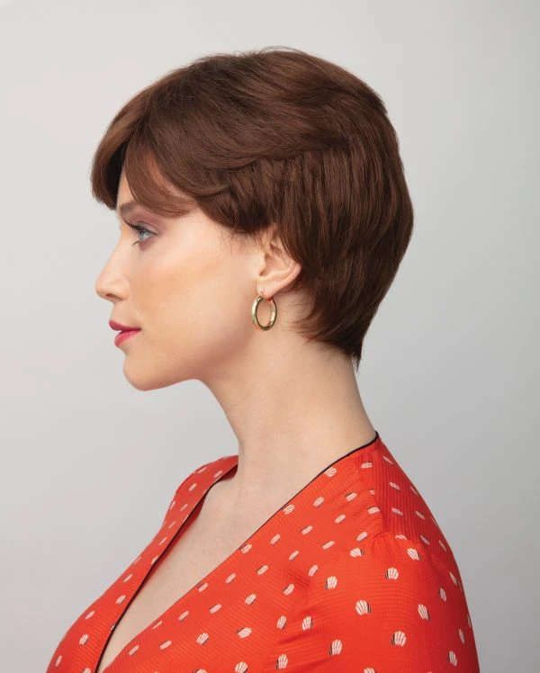 Kris from The Orchid Collection is a short-length Human Hair wig. This straight ready-to-wear wig is a sophiscated, tapered style features a monofilament top for a natural look. Kris is Monofilament top with adjustable tabs in the back nape area to allow a more comfortable fit. The Monofilament top gives you a light breathable base and a more realistic appearance to create a natural illusion which allows you to change the direction of the part on the wig. It provides the ultimate versatility and comfort.