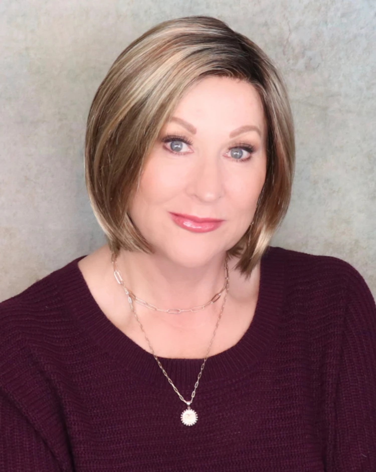 Sleek and smooth, Meritt’s distinctive layering creates a face-framing bob that flatters all face shapes. Long, side-swept bangs soften the face, completing this stylish look.