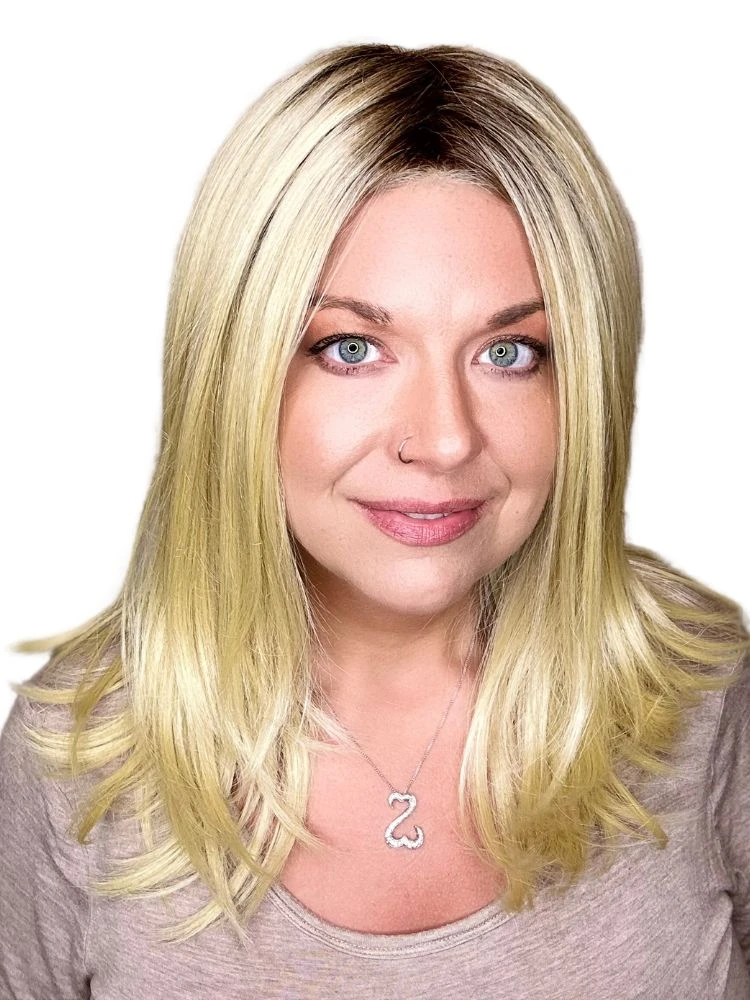 The lace front is extended to the temples so that the cut can be clipped up and away from the face, or styled to softly cascade down onto the cheeks. This beautiful style is suitable for Oval, Round, Square, Diamond, Heart & Pear shaped faces.