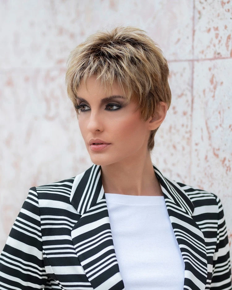A sophisticated, boyish cut designed with spiky layers and featuring a breathable Open Top construction, Penelope offers a fun, flirty alternative to the traditional pixie. Style it up or comb it down, this look offers versatile styling at its best.