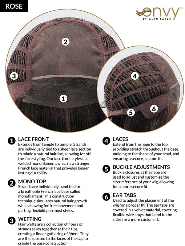 Rose’s face-framing layers kick off the shoulders with a cut that suits every woman’s style. The nearly-invisible lace front allows the wearer to customize the sweeping bangs, and the mono-top construction puts movement in all the right places!