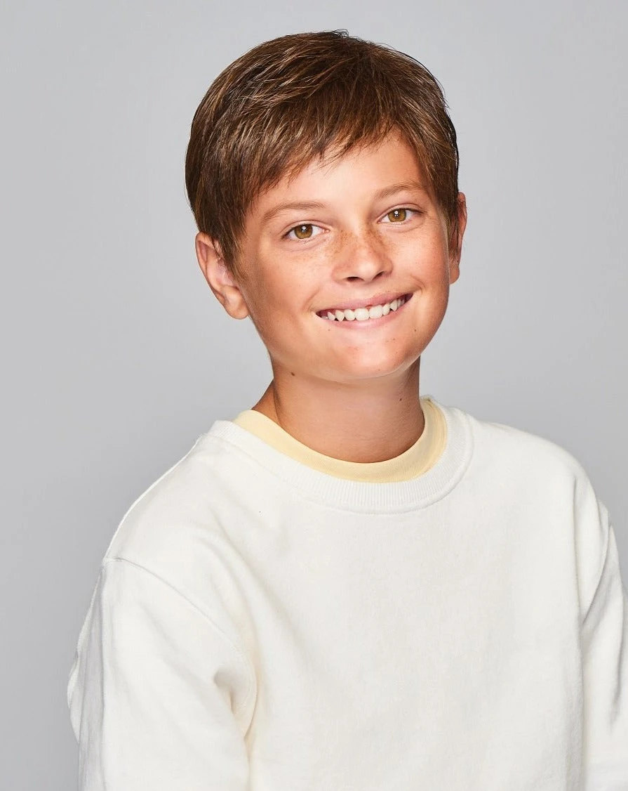 Unleash his courageous spirit with this freshfrom- the-barbershop cut. Even when windblown, the hairline looks natural, realistic and superhero handsome.